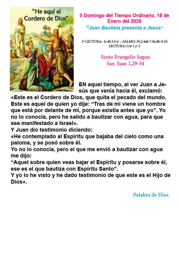 Testigo de Jesús: Juan estaba bautizando en el río Jordán y vio a Jesús acercarse, y el Espíritu Santo descendió sobre Él como una paloma, confirmando su identidad.